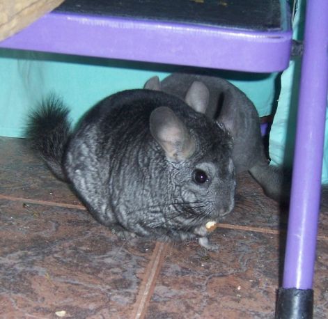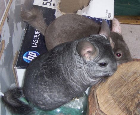 ez a két, alig két hónapja együttélő,már középkorú csinfiú egyébként is roppant érdekesen működik,mert köztudott,hogy bizony nincs híján a csincsilla az írígységnek,de ők az éppen megkapott nasival is egymás mellé,pontosabban fenék a fenékhez nyomódva kucorodnak be egy sarokba,mintegy védelmi állásba a külvilággal szemben:)Fel sem merül bennük,hogy egymás elől védjék meg amit kaptak...